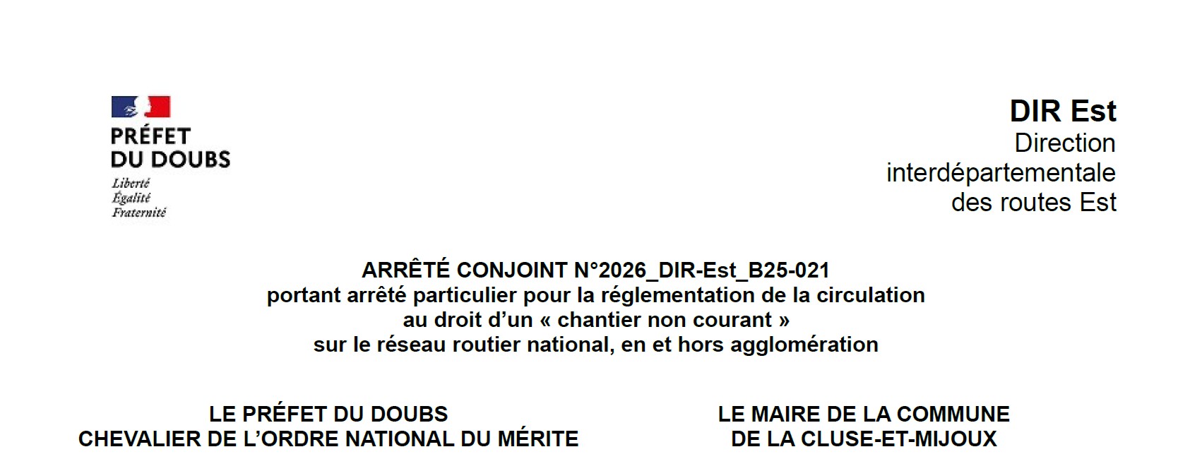Cliquez ci-dessus pour télécharger l'Arrêté Préfectoral complet